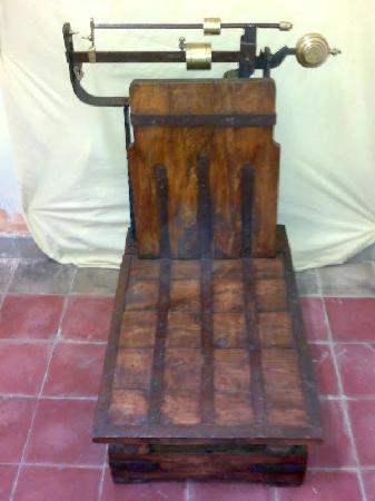 Su funcionamiento se basa en una plataforma horizontal de madera, sobre la que se coloca el objeto que se quiere pesar, descansando sobre un mecanismo de palancas.